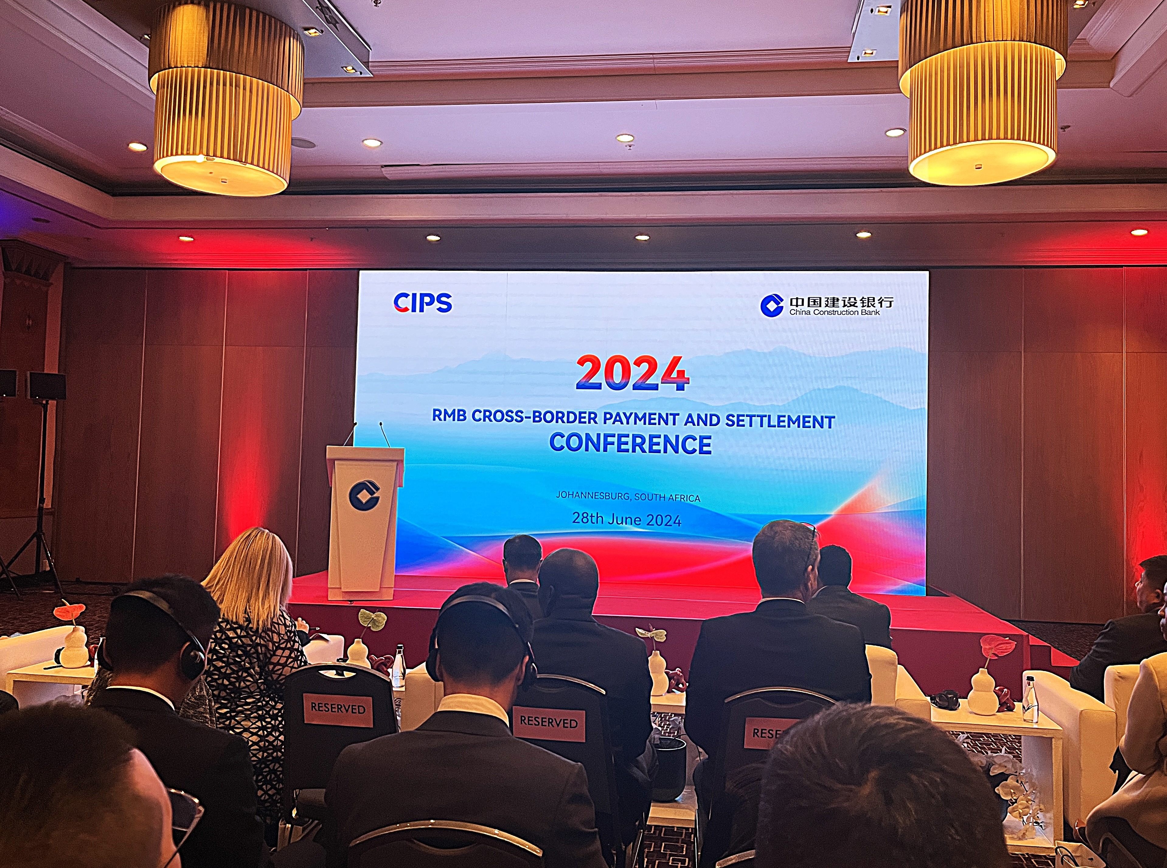 6月28日,人民币跨境支付清算会议在南非约翰内斯堡举行。中国跨境银行间支付清算有限公司(CIPS)总裁许再越率团出席并进行推介,中国驻南非大使馆公使郑冰开、中国驻南非大使馆经商处公参刘峪等出席会议并致辞。